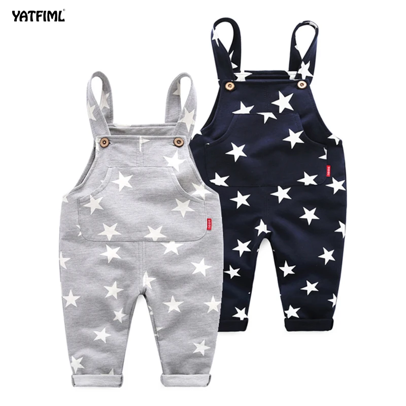YATFIML/весна-осень; милый комбинезон со звездой для маленьких мальчиков и девочек; хлопковый комбинезон на подтяжках с пуговицами