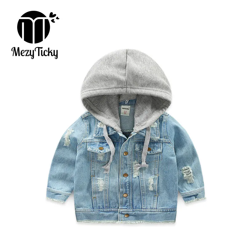 Детская джинсовая куртка с дырками; Весеннее модное пальто для маленьких мальчиков; Детская верхняя одежда со съемным капюшоном; Верхняя одежда из парусины