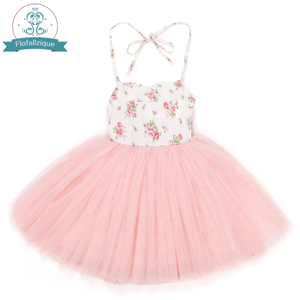 Платье-пачка принцессы с цветочным принтом и открытой спиной для маленьких девочек; костюмы из тюля для свадебных торжеств; Одежда для дево...