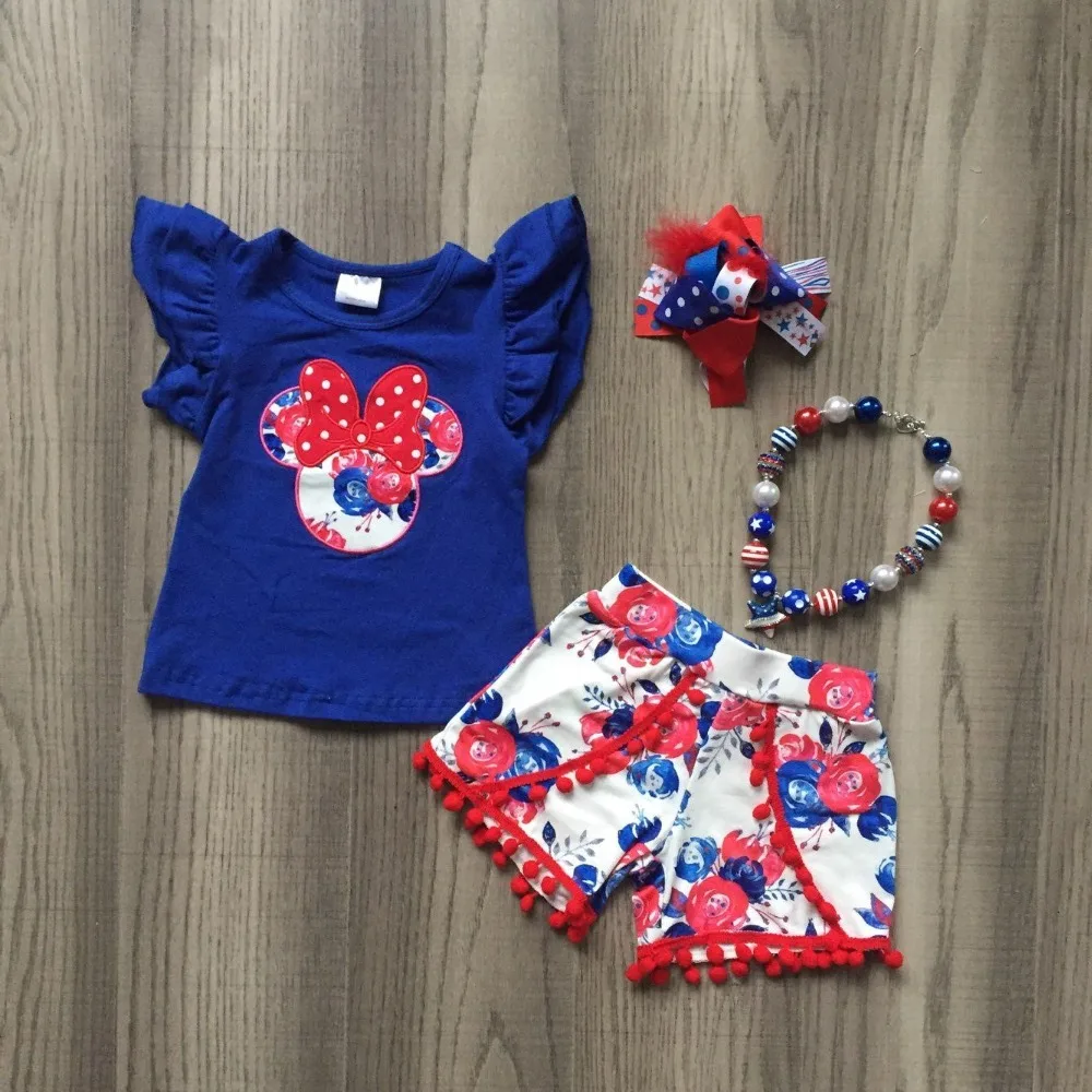 Новое поступление, летняя одежда для маленьких девочек, топ с цветочным рисунком и рисунком мышки, штаны с цветочным принтом, Изысканная оде...
