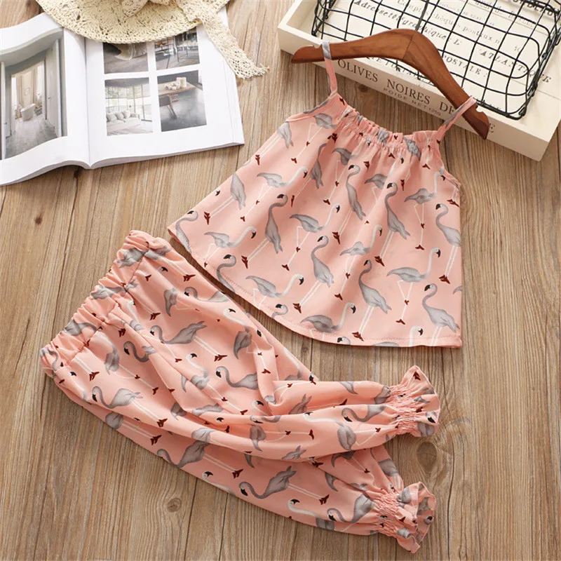 Красивый детский спортивный костюм с изображением лебедя для девочек, Auti-Противомоскитные штаны + жилет на бретелях, детский Тонкий комплек...