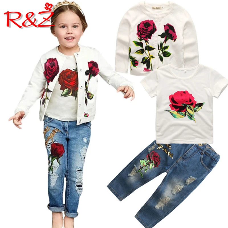 R & Z/комплект одежды для девочек 2018 Демисезонный новый модный бренд вырос 3 шт От 2 до 9 лет дети с длинными рукавами Дети цветов комплект одежд...