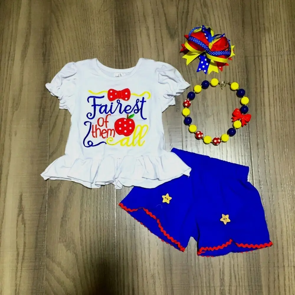 Школьная одежда для маленьких девочек; белая рубашка для девочек; шорты с синими звездами и аксессуарами