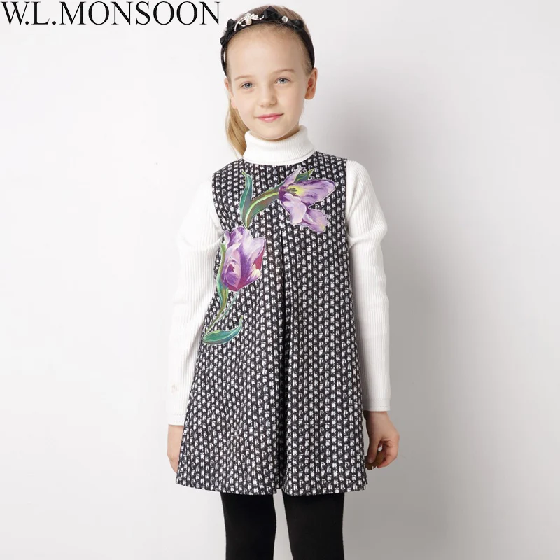W. L. MONSOON/платья для маленьких девочек с вышитыми цветами; Брендовое зимнее платье для девочек; Рождественский костюм принцессы; детская одежда