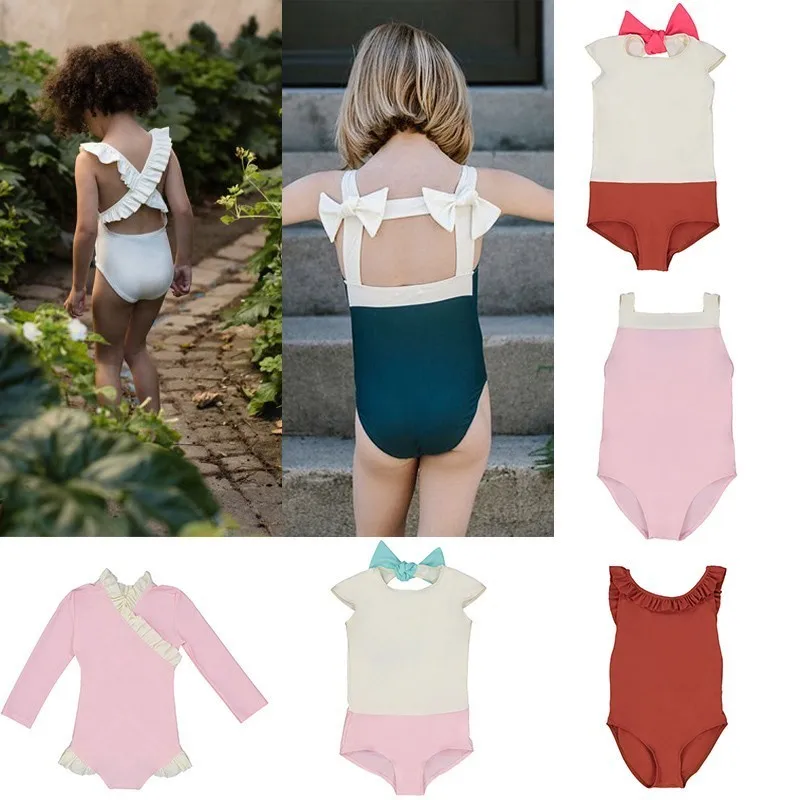 Дети Купальники 2019 Canopea бренд девушки лук цельный купальник купальники лето детские, для малышей чистого одежда с соединением внахлёст кост...
