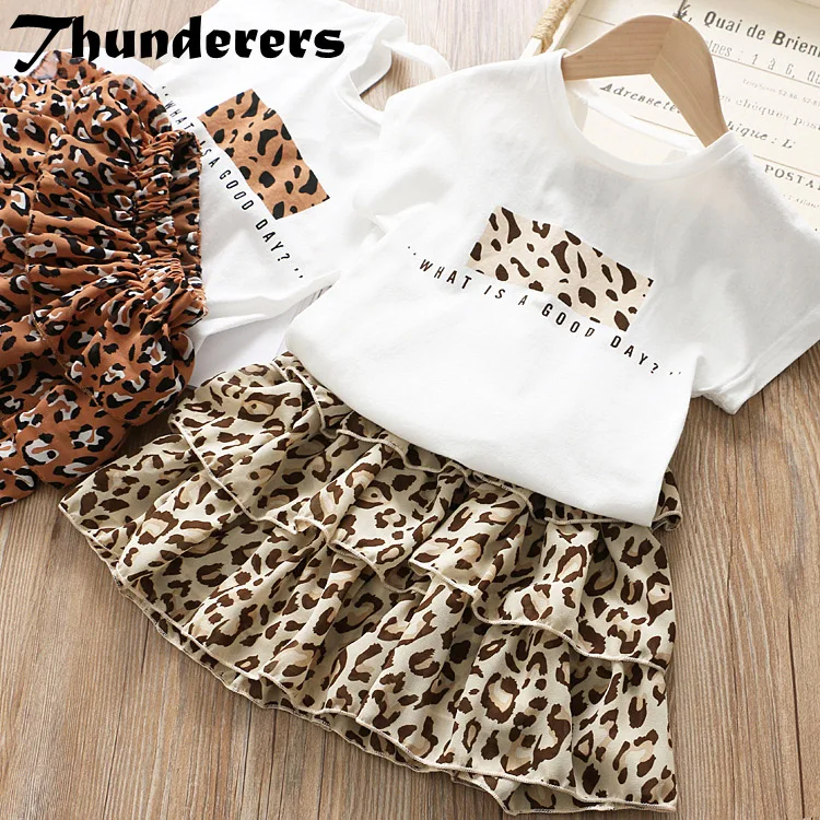 Thunderers/летний комплект одежды для девочек, рубашка с леопардовым принтом и юбка, комплект из 2 предметов для малышей, Повседневный хлопковый ...