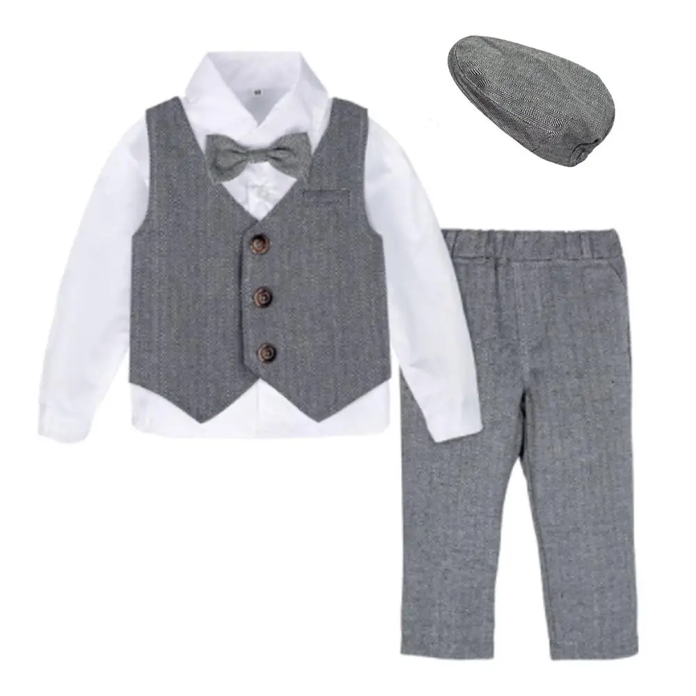Торжественный костюм для малышей блейзер для малышей смокинг джентльмена, наряд подарок на свадьбу, день рождения, зимний комплект одежды с длинными рукавами, 4 предмета
