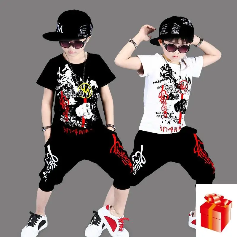 Костюм с короткими рукавами для мальчиков-подростков новый летний детский спортивный костюм для уличных танцев хлопковый костюм в стиле хи...