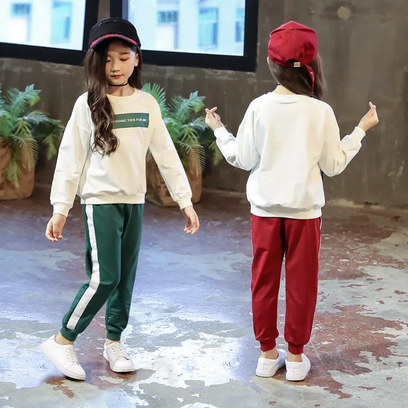 Осенняя толстовка с длинными рукавами и буквенным принтом 2020, спортивные штаны, комплект одежды из двух предметов, повседневные весенние комплекты одежды для девочек