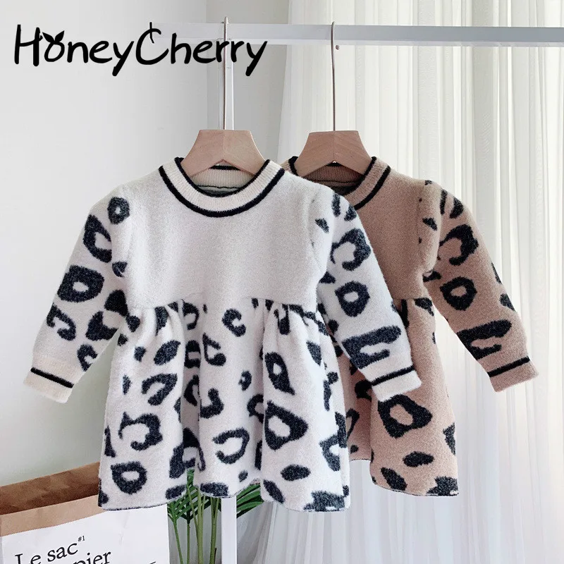 Платья с леопардовым принтом для маленьких девочек новые детские милые платья и свитера с леопардовым принтом на осень и зиму 2019 года