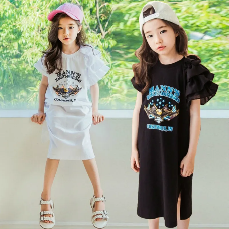 2019 Летнее Детское платье, хлопковое платье для девочек, эластичное детское Повседневное платье, Брендовое детское длинное платье с рисунко...