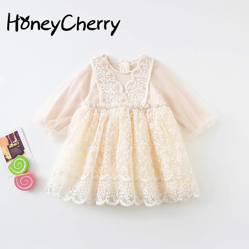 Детские платья для девочек летние Весенняя одежда для детей хлопок Платье для маленьких девочек с цветочной вышивкой с длинными рукавами п...