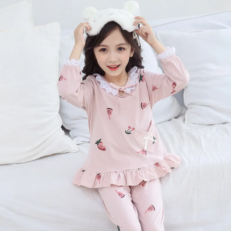 Пижамы для девочек мягкая хлопковая Детская домашняя одежда принцессы с длинными рукавами, пижамные комплекты, топ и штаны 6 пижам для девочек на день рождения