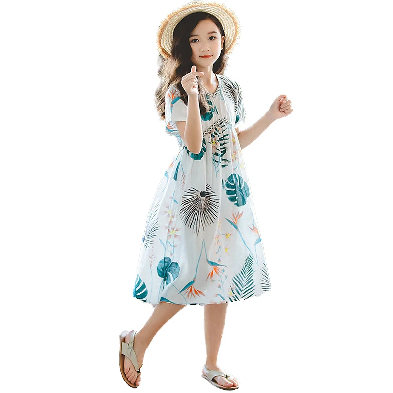 Летняя пляжная одежда для девочек 2019 г. Новое длинное белое платье повседневное платье принцессы с короткими рукавами и цветочным рисунком ...