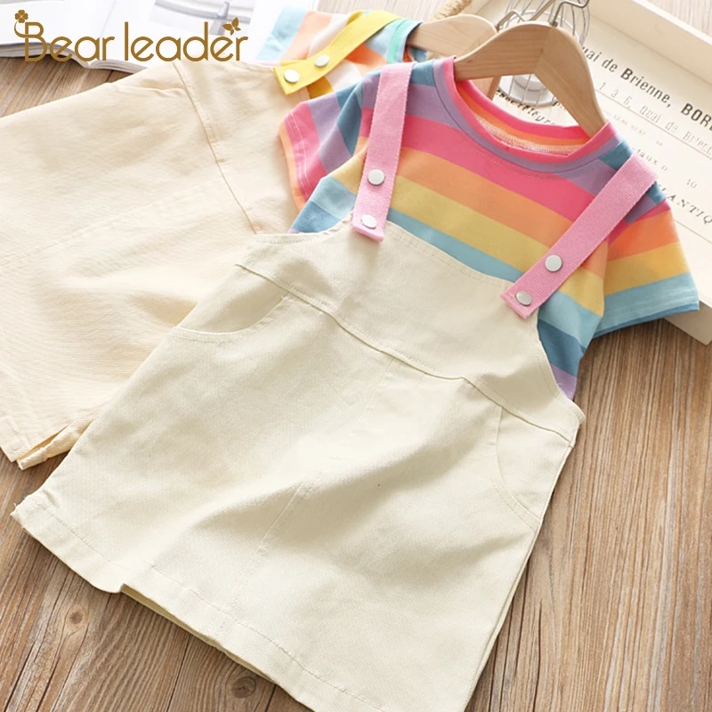 Костюм для девочек Bear Leader, брендовая одежда для маленьких девочек, комплекты одежды для детей, футболка без рукавов + шорты в клетку, комплект из 2 предметов, 2019
