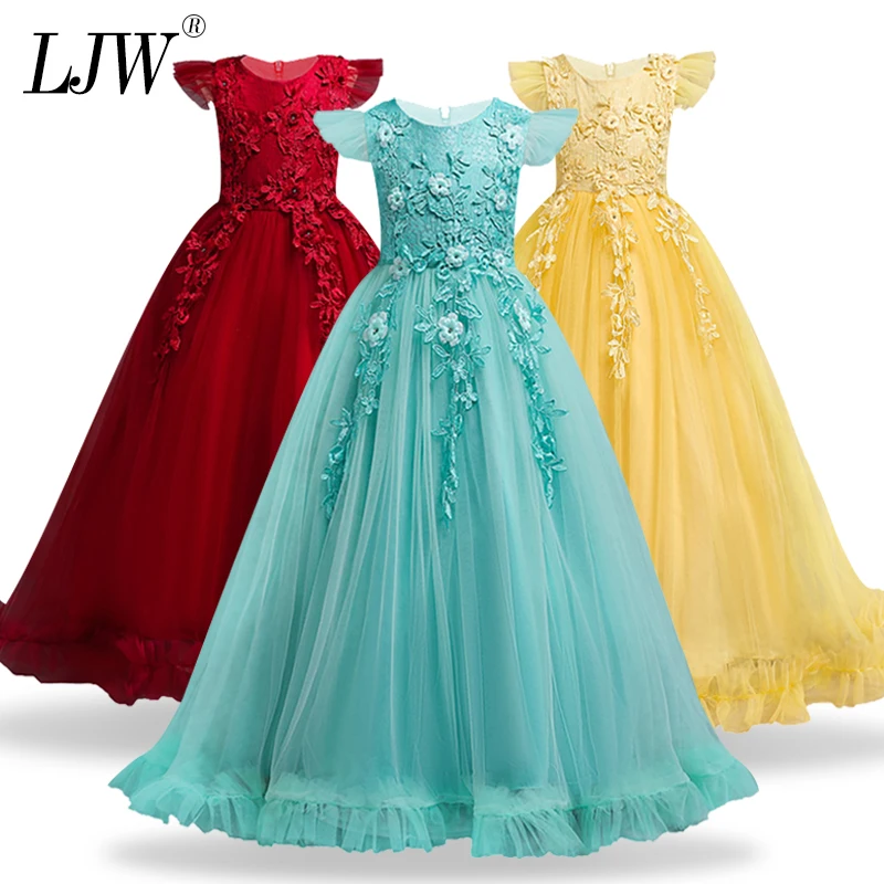 От 4 до 15 лет дети девочки длинный кружевной цветок вечерние Вечеринка элегантное бальное платье Выпускные платья Детские Девочки Принцесс...