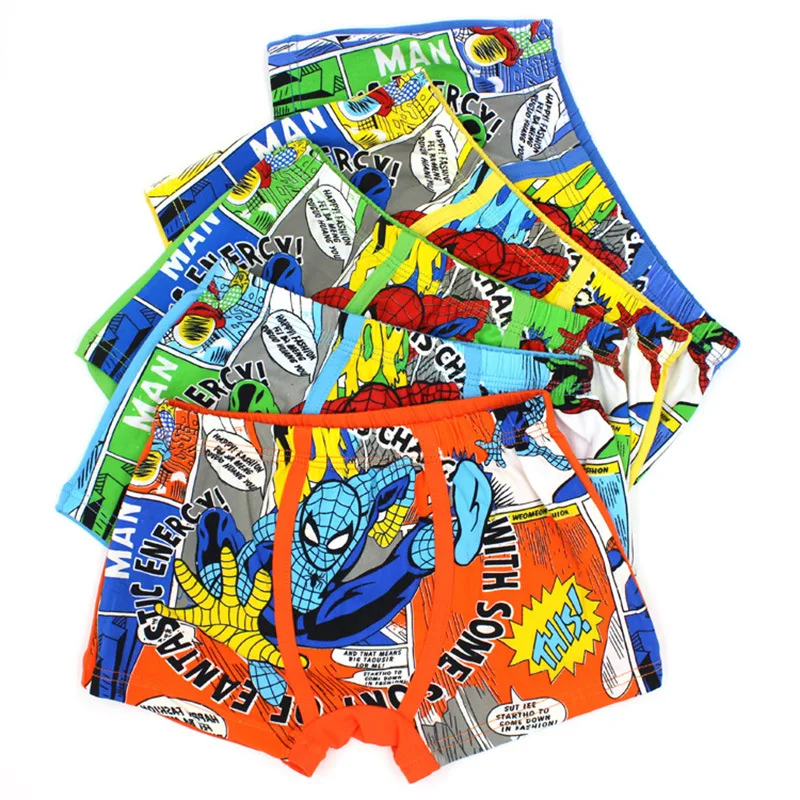 10 шт./лот; Трусы-боксеры для мальчиков; Детское нижнее белье из хлопка; Трусы с рисунком Человека-паука для мальчиков; Удобные модные трусы