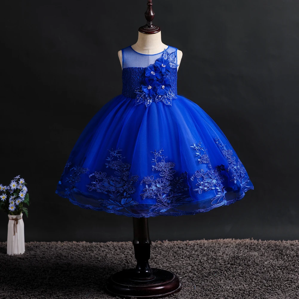Платье принцессы для девочек, модное, изящное, летнее, кружевное, с вышивкой