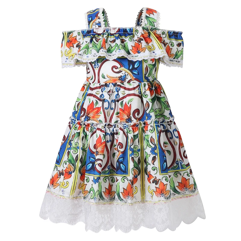 Летнее кружевное платье принцессы для торжественного вечера, свадебного торжества, платье с цветочным узором для девочек, детская одежда, д...