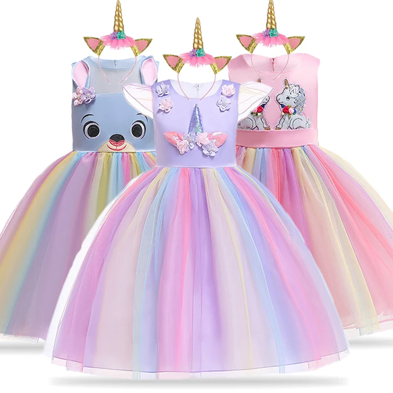 Платье для девочек Единорог вечерние платье для малышек костюм Моана пасхальное Детские платья для девочек элегантное платье принцессы 3 4 5...