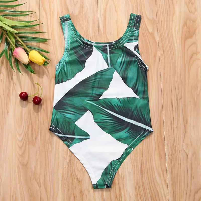 2018 Для женщин мамы маленьких Одна деталь купальный костюм пальмовых листьев принтом Семейные комплекты ванный комплект