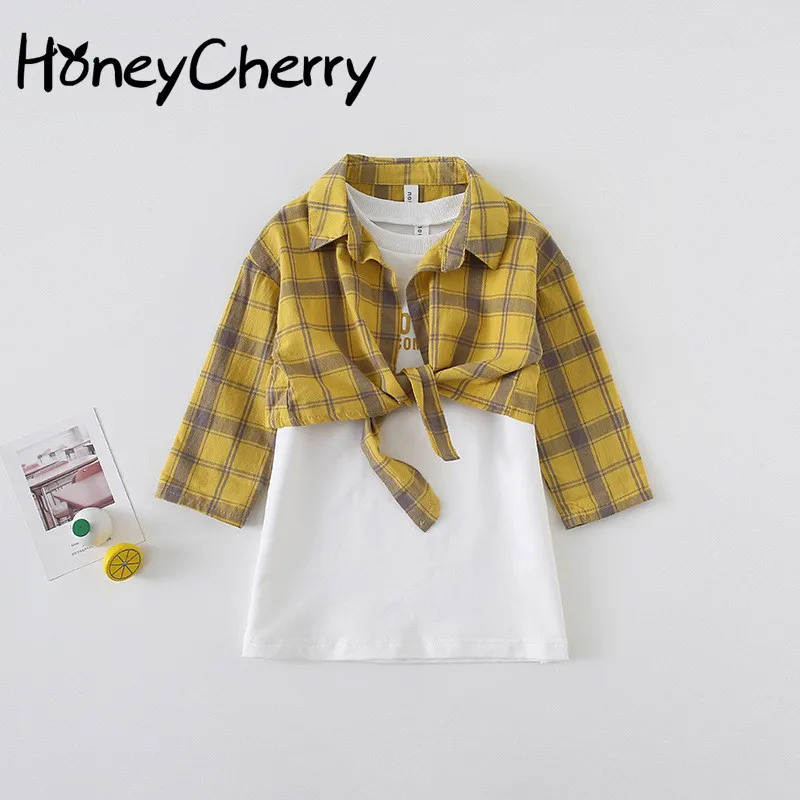 НОВЫЕ комплекты одежды для девочек, Модный Западный костюм для девочек 2019 года, Весенняя Детская рубашка в клетку + юбка-жилет, костюм из дву...