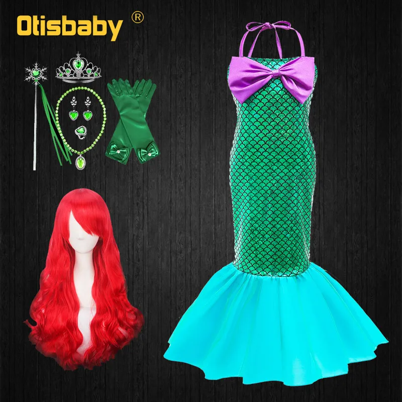 Платье принцессы Ариэль для девочек летние вечерние платья Русалочки для костюмированной вечеринки детское пляжное платье с наплечниками на бретелях