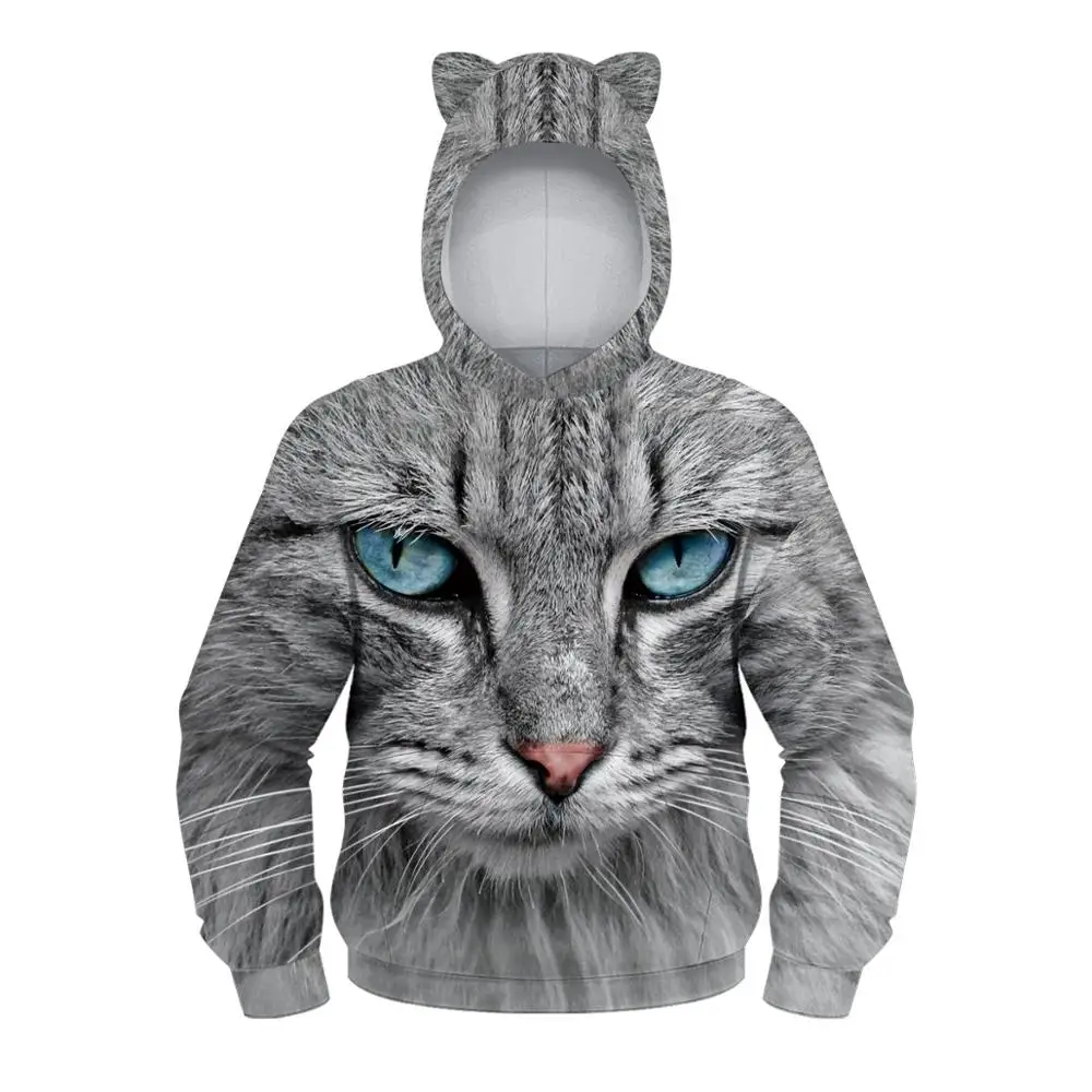 Осень-зима; модные толстовки с капюшоном с кошачьими ушками; детская толстовка с капюшоном с длинными рукавами и 3D принтом кота для девочек ...