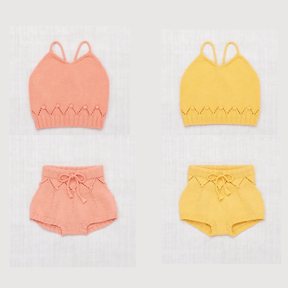 2020 SS Kids Girls Summer Knitting Clothes Sets Misha Puff Children Crochet Sling Tops and Bloomers Baby Girl Misha and Puff