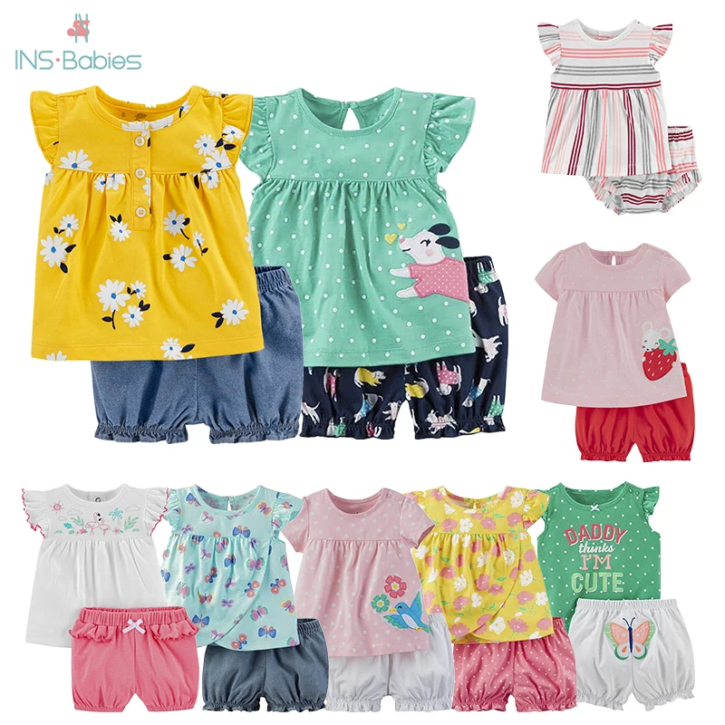 Комплект из 2 предметов для маленьких девочек: шорты + футболка, модная одежда для новорожденных, хлопковая одежда с короткими рукавами, летний костюм с рисунками животных для девочек