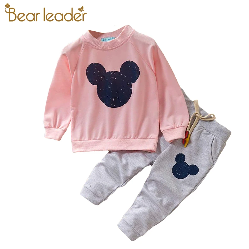 Bear Leader/Одежда для маленьких девочек повседневные весенние комплекты одежды для малышей толстовки с мультяшным принтом + повседневные штаны одежда для малышей из 2 предметов