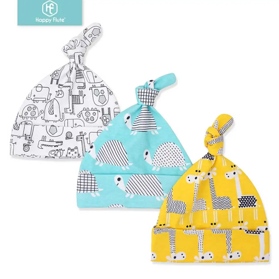 Happyflute/Детские шапки и кепки, 3 шт./лот, 100% хлопок, детские шапки и кепки с принтом для детей 0-6 месяцев, для маленьких мальчиков и девочек