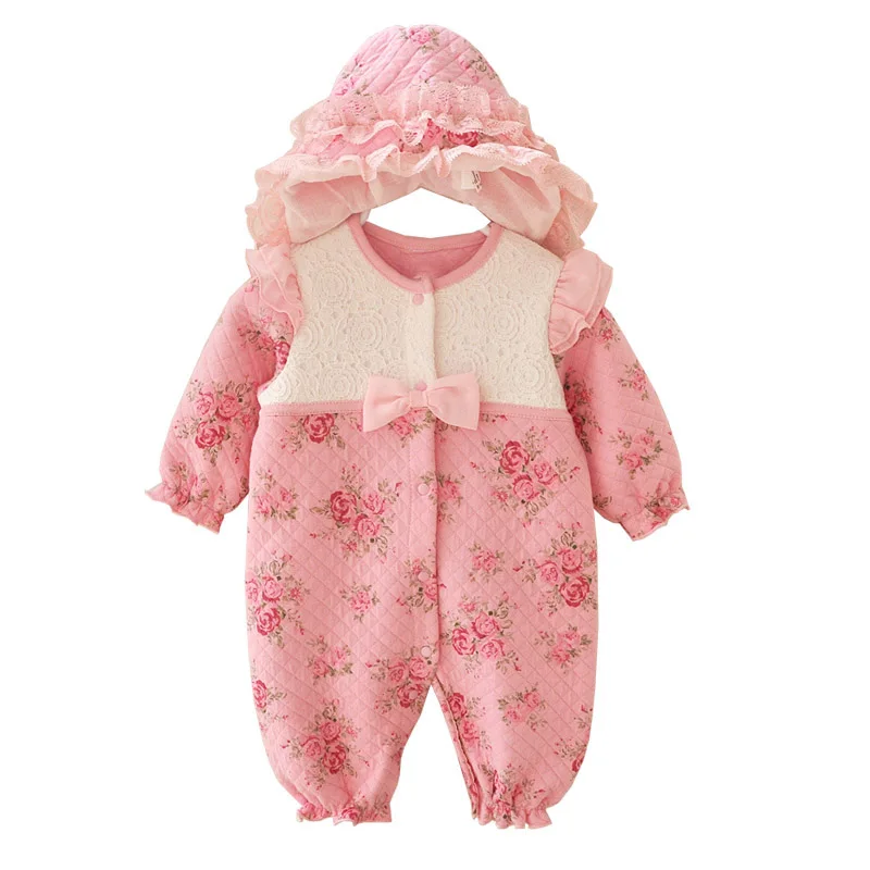 Милая Одежда для новорожденных девочек, новый стиль, комбинезон принцессы с бантом/цветами и шапочка для девочек, комплект одежды из 2 предм...