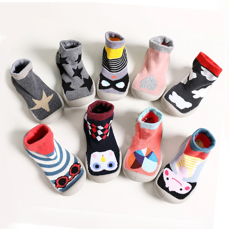 Домашние тапочки для малышей; нескользящие носки для малышей; учимся ходить; хлопковые носки для малышей с резиновой подошвой; толстые зимн...