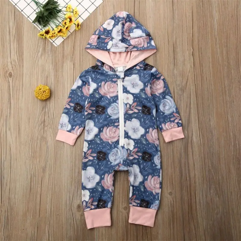 0-24 Months Cute Hooded Baby Girls Rompers Autumn Long Sleeve Floral Print Baby Girl Clothes One Piece Jumpsuit For Girls Outfit