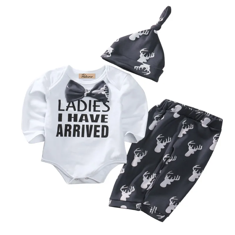 Лидер продаж, комплект повседневной одежды из 3 предметов для маленьких девочек и мальчиков, детский комбинезон, футболка + длинные штаны с оленем, комплект одежды, комплект одежды