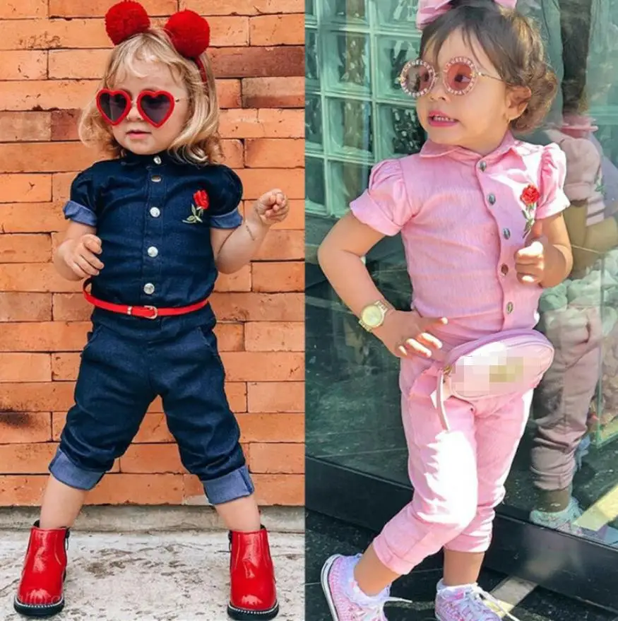 Крутые детские розовые комбинезоны с вышивкой для маленьких девочек, комбинезоны с короткими рукавами и отложным воротником, Детская уличн...