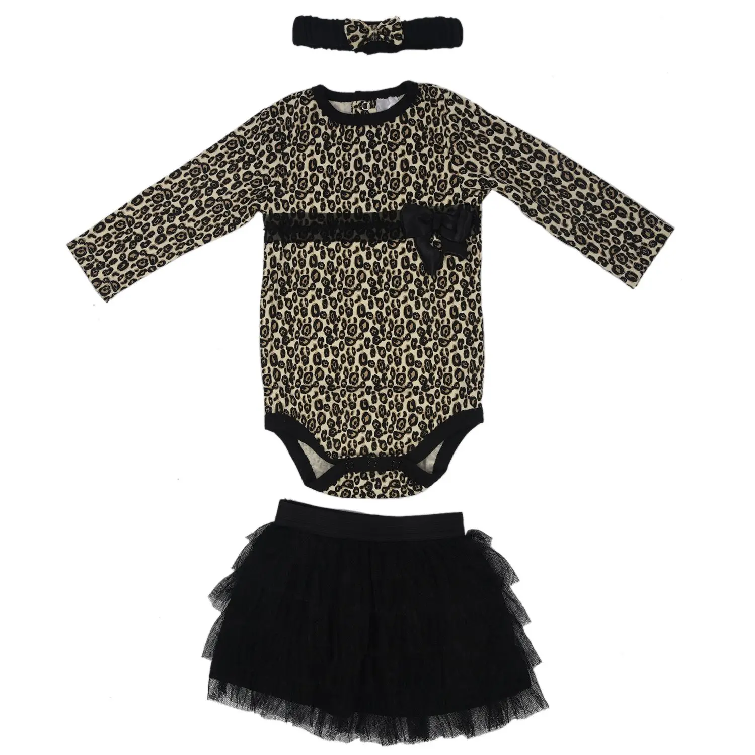 Комплекты из 3 предметов для маленьких девочек: комбинезон с длинными рукавами + юбка-пачка, платье + повязка на голову (шляпа), Осенние леопардовые комплекты одежды для девочек