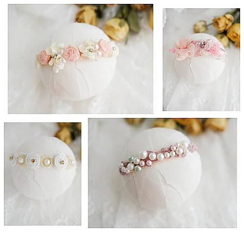 Новорожденный реквизит для фотосессии Детская повязка для волос цветок лента для волос Infantil фото головной убор с жемчужинами Детские аксес...