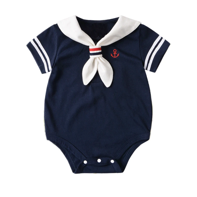 Летний детский комбинезон с короткими рукавами; Одежда для девочек; Хлопковый комбинезон для новорожденных; Одежда для маленьких мальчиков и девочек; Боди; Детская Униформа моряков Синяя
