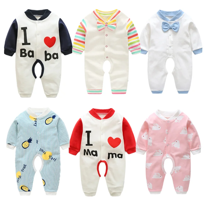 100% хлопок Лето Одежда для новорожденных Длинные рукава мультфильм Комбинезоны для маленьких мальчиков весна восхождение одежды костюмы дж...