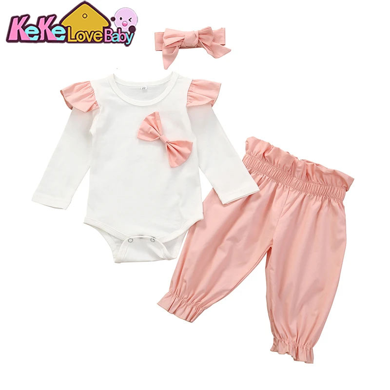 Одежда для маленьких девочек комплект одежды для новорожденных из 3 предметов, зимние детские топы с бантом, комбинезон, штаны повязка на го...