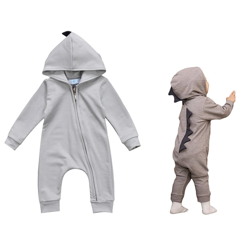 Модные комбинезоны для малышей с капюшоном и длинными рукавами с динозавром