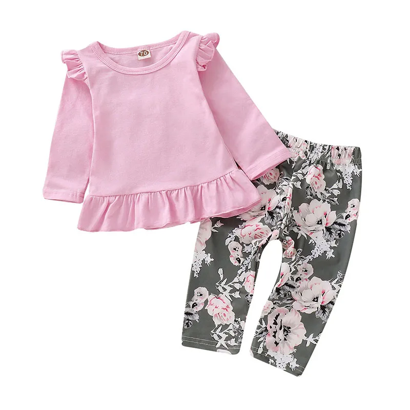 2 шт./компл., одежда принцессы для маленьких девочек розовый топ с оборками + штаны с цветочным рисунком комплект одежды для маленьких девочек