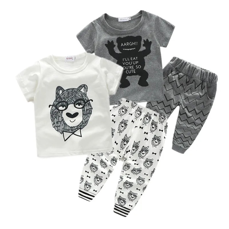 Одежда для маленьких мальчиков с милым медведем, рубашка с принтом «moster» + штаны, vestidos