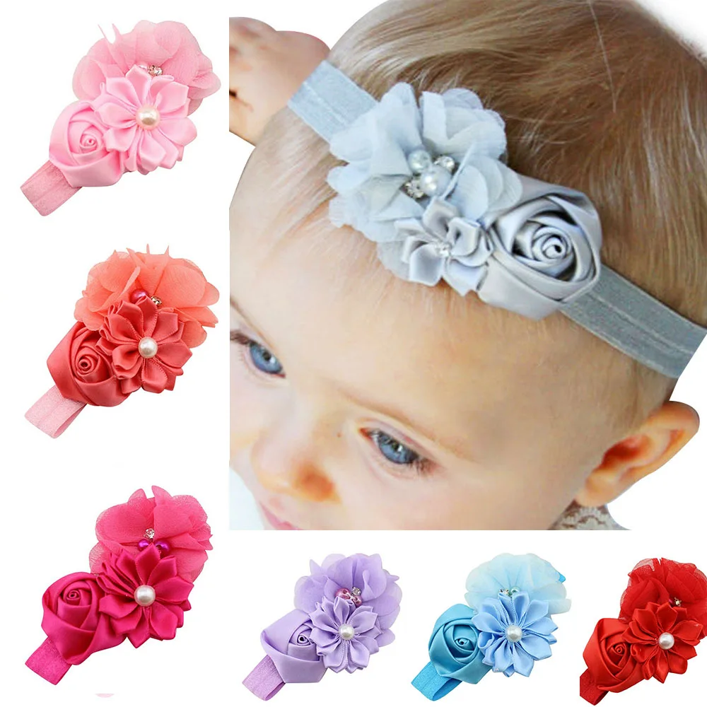 Оптовая продажа, 10 шт./партия, 2019 г., нарядная атласная Цветочная эластичная повязка для волос, аксессуары для волос