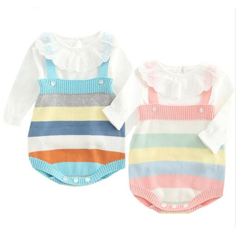 Комбинезон для маленьких девочек, одежда для новорожденных, детские комбинезоны, вязаные комбинезон для маленьких мальчиков, радужные поло...