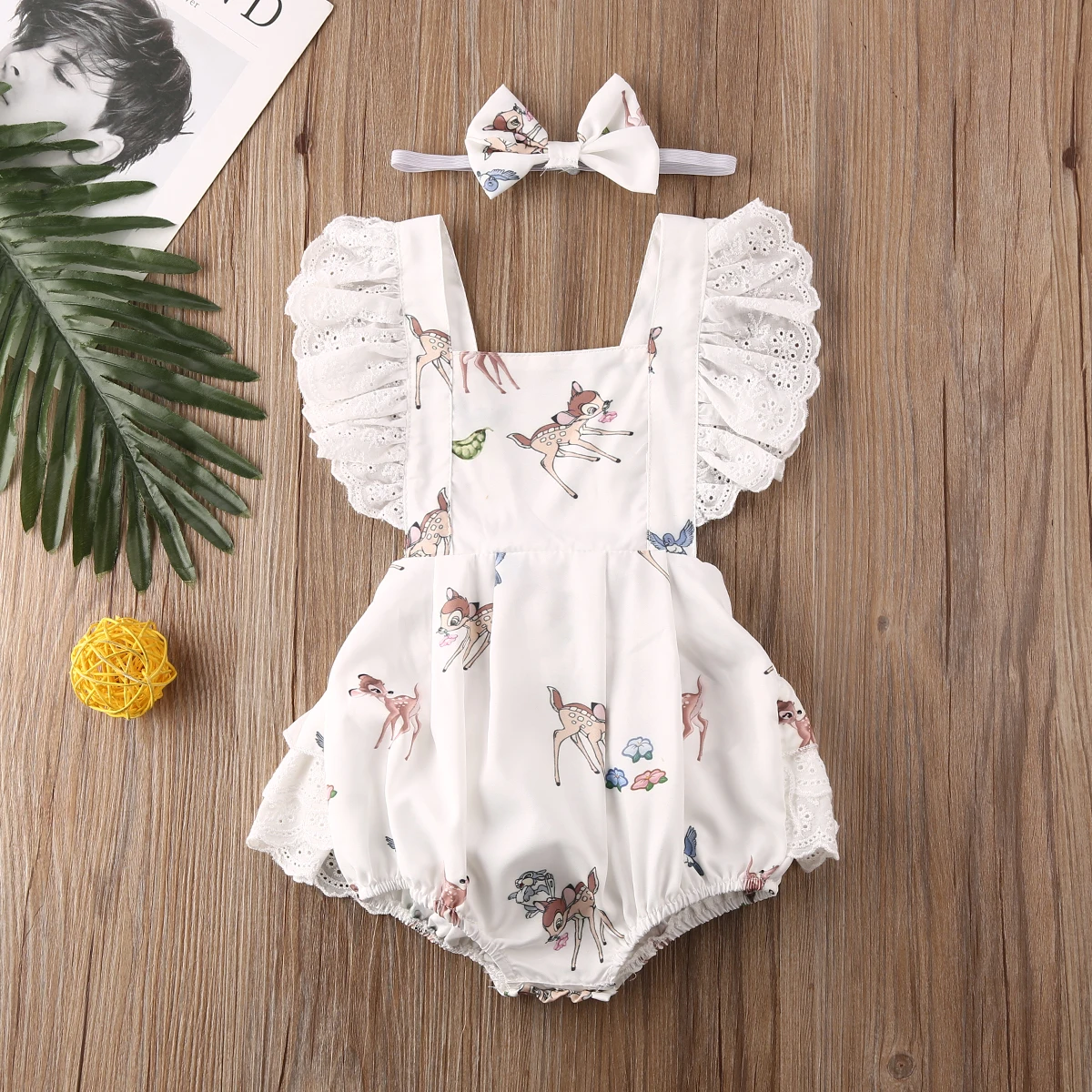 Pudcoco/Одежда для новорожденных девочек; Рождественская одежда с принтом оленя; кружевной комбинезон с оборками без рукавов; повязка на голов...