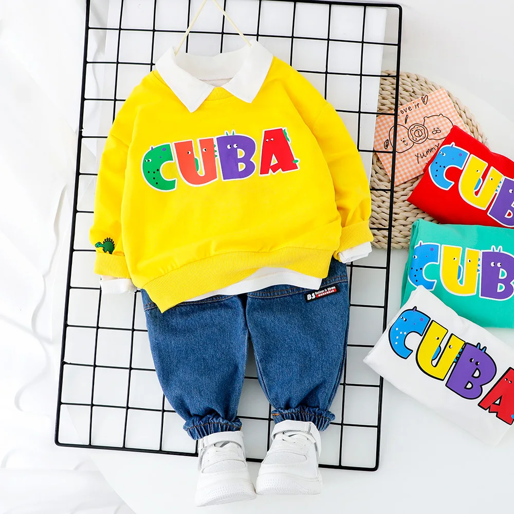 Весенне-осенняя одежда для маленьких девочек комплект одежды для новорожденных, одежда для маленьких мальчиков повседневная футболка + джи...