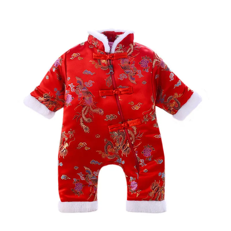 Новогодний комбинезон для новорожденных, ползунки, одежда для маленьких мальчиков и девочек, комбинезон в китайском стиле, Детская верхняя ...